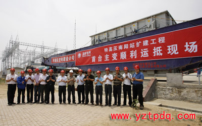 1000千伏晉東南-南陽-荊門特高壓交流試驗示范工程擴建工程南陽站首臺主變于5月30日下午從周口港啟運,經過四天公路運輸,于6月3日12時18分運抵施工現場,打通了南陽站主變運輸的通道,吹響了工程電氣主設備安裝的沖鋒號。