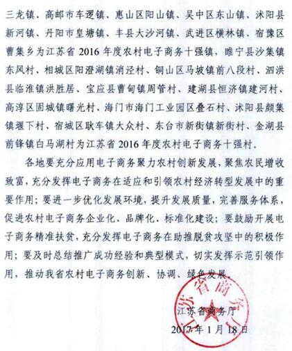 日前,在江蘇省商務(wù)廳發(fā)布的“江蘇省2016年度農(nóng)村電子商務(wù)十強縣(鎮(zhèn)、村)”名單中,寶應(yīng)縣曹甸鎮(zhèn)周管村入選“十強榜單”,獲評電子商務(wù)十強村。