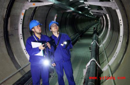 圖為工程驗收人員正在新落成的“電纜隧道”內進行驗收。