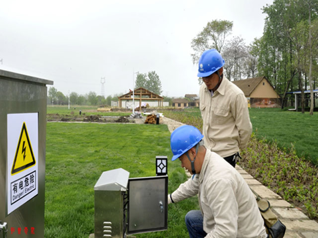 2019年4月26日,江蘇高郵市供電公司龍虬供電所員工在位于龍虬鎮北側的龍虬莊遺址公園檢查路燈控制箱。“五一”將至,擴建的龍虬莊遺址公園將于4月28日開門迎客,高郵市供電公司組織人員前往公園開展用電檢查,確保節日期間公園內安全可靠用電。