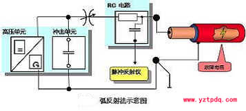電纜的高阻故障由于故障點的電阻較大(大于10倍的電纜波阻抗),低壓脈沖在故障點沒有明顯的反射。故不能用低壓脈沖法來測量,而只能由高壓設備發出高壓信號(沖閃時發出脈沖高壓),使故障點產生閃絡性放電,從而發生電壓突跳。這個突跳電壓在故障點和測試端之間來回反射,根據每一次往返所經歷的時間和電波傳播速度,同樣用上面的公式計算出故障點的距離。低壓脈沖法由儀器內部產生觸發,而閃絡法則由外部高壓產生觸發。此現象可以在不同情況下按采樣鍵得到反映,在低壓脈沖時按采樣波形馬上顯示出來,而高壓閃絡時按采樣鍵波形并不馬上反映出來,而是等外部高壓觸發打火后才顯示出來。此種代表性儀器為本公司生產的:電纜故障測試儀。