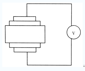 鐵芯兩點接地時的電壓如圖3所示。鐵芯在額定激磁電壓下,測量鐵芯兩端片間電壓時,發現兩端片間有電位差存在。這個電位差是由于鐵芯、電壓表及導線所構成的回路與鐵芯內磁通相交鏈而產生的。因為交鏈的磁通量相當于總磁通的1/2,所以這個電壓的數值大體相當于匝間電壓的1/2。顯然,當鐵芯或其它金屬構件有兩點或兩點以上接地時,則接地點間就會形成閉合回路,造成環流,有時高達數10 A。該電流會引起局部過熱,導致油分解,產生可燃氣體,還可能使接地片熔斷,或燒壞鐵芯,導致鐵芯電位懸浮,產生放電,使變壓器不能繼續運行。因此,鐵芯必須接地,而且必須是一點接地。