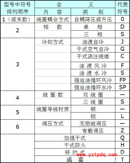 變壓器繞組數+相數+冷卻方式+是否強迫油循環+有載或無載調壓+設計序號+“-”+容量+高壓側額定電壓組成。