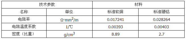 軟銅及硬鋁在20℃時的技術參數