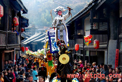 城隍老爺是城市保護神,明洪武初封城隍為忠佑伯,此后每年逢清明、七月半、十月朝(十月初一)城隍出巡三次,稱為城隍廟出會。出巡時,前面鳴鑼開道,依次是“肅靜”、“回避"八面虎頭牌,后為光臂鉤香的托香隊,其后是坐有城隍偶像的官轎,再后是民間文藝表演。城隍老爺由廟內啟駕行至北門外邑厲壇(俗稱鬼神壇),繞城一圈,至晚駕回廟中。七月半又舉行“齋孤會”,晚上做道場放河燈,稱“盂蘭盆會”,建國后廢止。