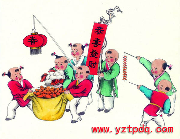 送灶以后,就真正開始了年貨的采購與囤積,貼春聯(lián)、貼門神、貼福字、貼年畫,這些寓意吉祥的大紅色的紙張給新年帶來了無處不在的喜氣與熱情,往往舊式有前后門的房屋會在前門貼春聯(lián),后門貼門神畫——唐朝初年的兩位大將秦叔寶和尉遲公。據說大門上貼上這兩位門神,許多妖魔鬼怪都會避而遠之,而小孩子們則是對這兩位形象頗有點猙獰的門神既怕又敬、既畏又尊,很是有趣。家里屋內的墻壁或房門上貼得都是些喜氣洋洋的年畫,比如麒麟送子、和氣娃娃等,現在的家庭大多以一卷卷漂亮精美的掛歷取代了各種花花綠綠的年畫,而“福”字卻貼得多了起來,那是因為越來越多的商家們愿意在新年貨品中夾上一兩張“福”字作為贈品,“福”字得倒著貼在門或窗戶上,這樣過路的人們看見了,會指著說“福”倒了,那么福就真的要到了哦。