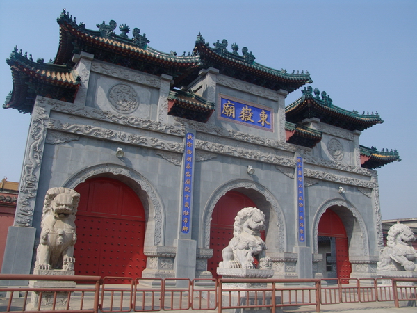 【建設現狀】恢復重建的東岳廟占地近30畝,現已建成山門、靈官殿、東岳寶殿、客堂、齋堂、鐘鼓亭等。山門于2006年10月完工,總投資100多萬元,在全國來說都不多見。山門兩側建有城隍殿、客堂、齋堂等配房。前殿(靈官殿)落成于1999年,內部供奉道教靈官祖師(王靈官)以及青龍、白虎、朱雀、玄武四大神像。主體工程東岳寶殿建成于2003年,總投資600多萬元,正面懸掛的巨幅牌匾由已故全國道協會長閔智亭道長題字。殿內供奉東岳大帝、慈航、十大太保等。