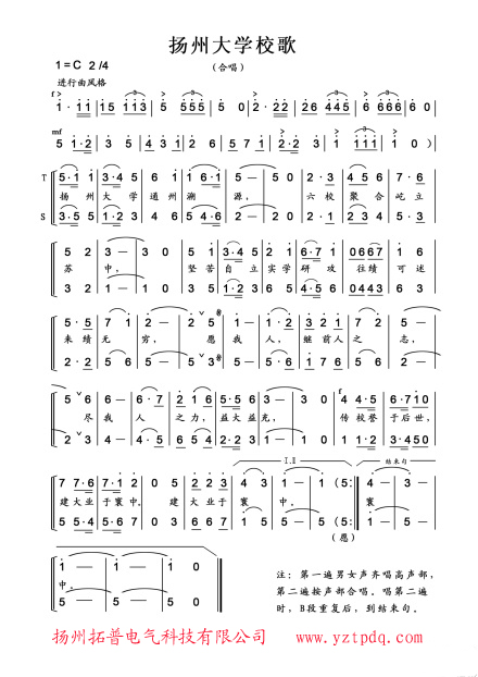《揚州大學(xué)校歌》9月16日,經(jīng)揚州大學(xué)黨委常委會審定,并確定了揚州大學(xué)校歌。