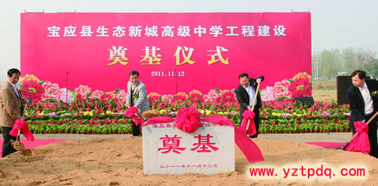 寶應縣委、縣政府11月12日上午隆重舉行生態新城高級中學工程建設奠基儀式,寶應縣領導仲生、王庭國、秦有芳、侯承海、朱宋華、楊善慧,楊洪國、楊步云等出席并為工程奠基培土。