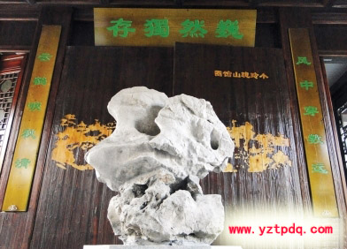 “這是一塊小玲瓏山館的遺石,姿態優美,玲瓏有致,‘皺、透、漏、瘦’皆備,唯一遺憾的是只剩上半截。這一石頭是街南書屋的鎮宅之寶,為當年馬氏兄弟所有。康乾年間,馬氏兄弟是揚州舉世聞名的儒商,這塊高達兩米的太湖巨石,相傳為甘泉縣令龔鑒所贈。”有關專家介紹說,“這塊石頭剛從史可法紀念館運回,安放在才修復的‘十二景’之一看山樓內,回歸故園的玲瓏石將成為修繕復原后的‘十二景’中一道充滿傳奇色彩的風景。”