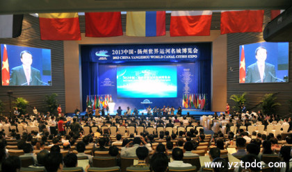 謝正義代表中共揚州市委、揚州市人民政府和460萬揚州人民,對各級領導和中外嘉賓表示熱烈歡迎。他說,因“州界多水,水揚波”而得名的揚州,自古以來依水而建、緣水而興、因水而美。水催生了揚州的數度繁華,涵養了揚州的美好生態,孕育了揚州的悠久文明,成就了揚州的名城地位。正基于此,揚州在經濟快速發展的今天,仍然將水視作城市發展最可寶貴的資源、最具特色的品牌,充分利用長江、運河的岸線資源、交通優勢和文化內涵,大力發展汽車、機械、旅游、建筑和軟件信息服務業等基本產業;充分享用歸江十壩、運河三灣等揚州水工奇跡的寶貴遺存,在城市建設中彰顯水文化,加快打造“七河八島”、三灣濕地公園等生態中心;以讓人民群眾“喝上干凈水、吃上放心菜、呼吸上新鮮空氣”等基本需求為基礎,加快改善民生,努力把揚州建設成為古代文化與現代文明交相輝映的名城。