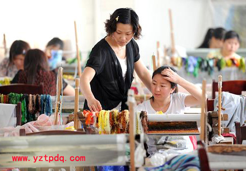 如何將亂針繡這一文化遺產(chǎn)傳承下來(lái)并發(fā)揚(yáng)光大?如何打造亂針繡品牌,讓更多的人知曉亂針繡?這是莫元國(guó)兄妹一直在思考的問(wèn)題。為了拓展市場(chǎng),他們多次到上海、常州、蘇州等地調(diào)研,確立公司的發(fā)展方向。與縣職教集團(tuán)聯(lián)合開(kāi)辦了職工職業(yè)技能中專(zhuān)班,讓員工們提升學(xué)歷和專(zhuān)業(yè)水平;與鎮(zhèn)成人校聯(lián)合開(kāi)辦了中小學(xué)生“亂針繡”興趣班,培養(yǎng)了一批批刺繡娃娃兵,為傳承非遺文化奠定基礎(chǔ)人才;與市、縣勞動(dòng)部門(mén)聯(lián)合,建立了職工亂針繡等級(jí)和專(zhuān)業(yè)技術(shù)職稱(chēng)評(píng)定標(biāo)準(zhǔn);多次邀請(qǐng)南京愛(ài)濤公司、常州刺繡研究所等單位的刺繡大師親臨魯垛培訓(xùn)指導(dǎo),提高技藝、提升品位,擴(kuò)大影響。就這樣,一支高素質(zhì)的繡姑隊(duì)伍迅速成長(zhǎng)、壯大起來(lái),在他們的帶動(dòng)和影響下,魯垛的亂針刺繡業(yè)走上了健康的產(chǎn)業(yè)發(fā)展之路。