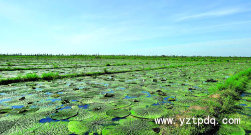 形狀和大小隨生育期的不同而變化。實生苗抽葉的第一張葉呈線性,無葉片和葉柄之分。第二、三張葉則呈劍型,葉片逐張加寬,葉柄逐張加長。第一至第四張葉均為水中葉,綠色,無刺。第五至第六張葉,葉柄明顯伸長,葉片葉明顯加寬,常可使葉片浮于水面生長,由箭形變為橢圓形。往后這類橢圓形的浮葉也逐張變寬加大,葉片長度從3cm增至16cm,寬度從1.5cm增至10cm,共約抽6~9張葉。隨著植株的繼續生長,葉柄逐漸增粗,葉片逐漸增大增厚,形狀由橢圓形變為圓形,逐漸過渡到抽生最后定型葉,常可以陸續抽生10多張,葉片大,縱橫莖一般為1~1.5m,最大可達2.9m,葉面濃深綠色,有明顯的起伏皺褶,葉背深紫色,掌狀網脈在葉背突起,有鋼刺。葉柄紫紅色,無刺,長1~2m,較粗,橫徑3~4cm,組織松軟,不能直立,故定型葉仍浮于水面。葉柄中有氣道,上通葉脈、下通短縮莖。