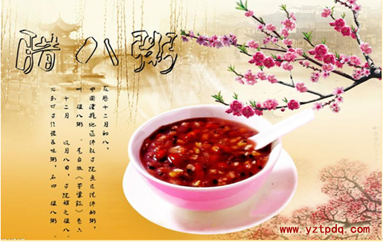 相傳農歷臘月初八是佛祖釋迦牟尼得道之日。這天,佛教徒用米糧和果菜煮粥供佛,稱“臘八粥”。民間煮臘八粥,講究的要用桂元肉、蜜棗、花生米、蓮子、銀耳、白果、栗子等摻合在糯米中煮成。后來吃粥之風傳及民間,這天,揚州家家都吃臘八粥。