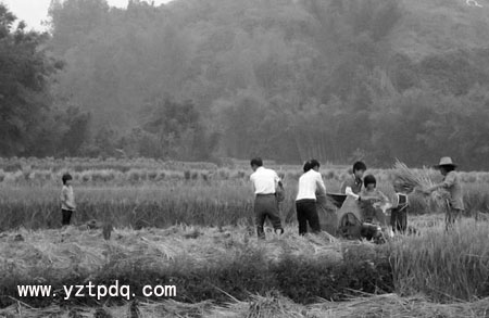 這時人也長大了,可以干得農活就比較多了。我們男生有時是踩水車,大家光著腳,輪流上陣,上去就拼命蹬起來,讓有的人跟不上節奏而吊在橫桿上,這叫“吊田雞”。要是有人被吊了田雞,大家就會樂不可支。當然與后來插隊時踩水車掙工分,就不是一回事了。那時才真正體會到“養苗蓄水水易干,農夫踏車聲如沸。車軸欲折心搖搖,腳跟皸裂皮膚焦”的艱苦了。