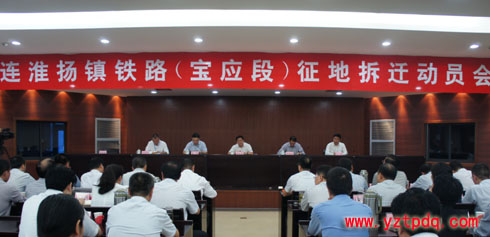 為加快連淮揚鎮鐵路(寶應段)建設步伐,保障項目順利實施,9月30日,江蘇寶應縣委、縣政府專題召開連淮揚鎮鐵路(寶應段)征地拆遷動員會。縣委副書記、代縣長王逍霄在會議上要求,要圍繞“高”、“嚴”、“快”三個字,做好征地拆遷工作。縣委常委、常務副縣長張偉主持會議,副縣長閆偉參加,市鐵辦主任尹建平、中鐵十九局集團連淮揚鎮鐵路項目指揮長劉宏圖應邀出席會議。