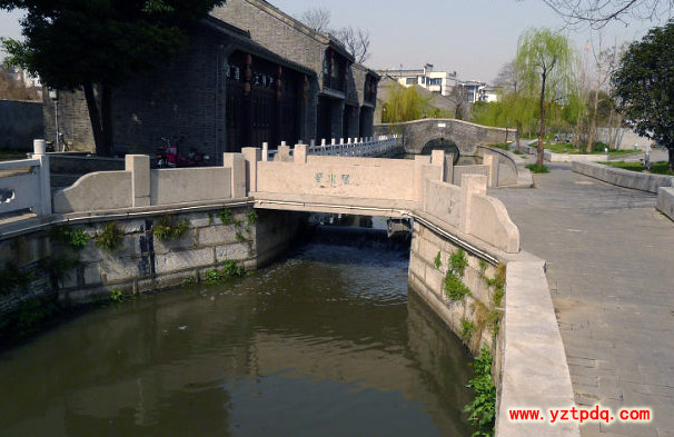 提起響水橋,在揚州無人不知。小橋位于南門外街,豬草坡下。古時橋下小溪,北通舊城河,經(jīng)小虹橋、大虹橋,與瘦西湖相連;南達古運河,與人江水首貫?zāi)堋S捎诘貏莸母叩停瑯蛳铝魉纬杉s2米左右的水位落差。為此,潺潺流水,常年響聲不斷。響水橋也由此得名。