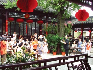 下午4時,瓊花觀社區三祝庵鄰里中心內古琴聲聲,談笑陣陣。揚州普通家庭歡度中秋的幸福時光被一一記錄。