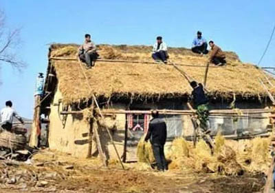 茅匠曾是里下河地區很古老的一門手藝,把麥秸當瓦用,鋪在屋頂后居然也能擋雨,手藝好的能使茅草房幾年安然無恙,遇到哪兒漏雨,請來茅匠上屋頂三弄兩弄,又能住上不漏雨的茅草屋了。