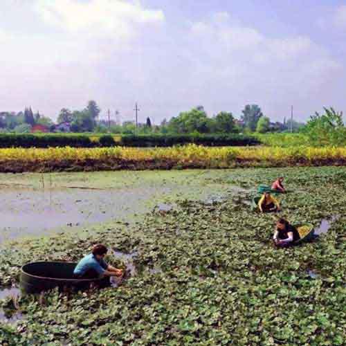 于是,南來北往的官員客商,旅人,無不在此時(shí)此地停留。他們或駐足觀賞,或爭購菱角,成為一種時(shí)尚。不僅如此,鎮(zhèn)上十多家“八鮮行”,也備足資金,批量收購,將邵伯菱銷往滬寧一線。更有浙江紹興一帶客商,將邵伯菱加工成淀粉,銷至東南亞一帶。由是,邵伯菱更是馳譽(yù)天下。鮮放后,國務(wù)院辦公室也曾專門將邵怕菱種放養(yǎng)到中南海內(nèi),供中外佳賓觀賞,品嘗。