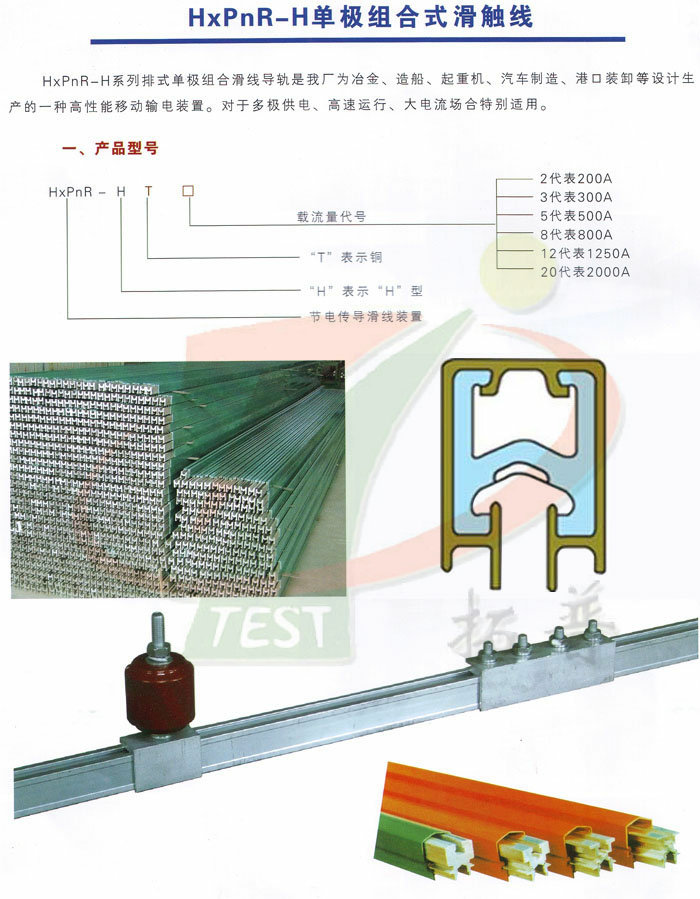 HXPnR- H系列單極組合式滑觸線由H型鋁合金本體導軌加壓V型不銹鋼滑接帶、PVC絕緣外殼、外置式集電器以及懸吊、固定等組件組合而成。該產(chǎn)品以其設(shè)計新穎、結(jié)構(gòu)合理、維護方便、使用安全等特點被廣泛應用于電流較大、使用頻率較高、運行速度快和環(huán)境較差的場合。