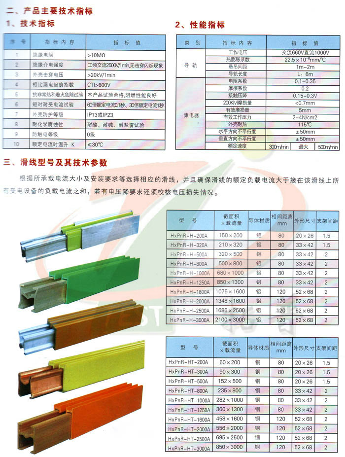3、HXPnR-H型有鋁合金和銅體兩種材料的滑線。